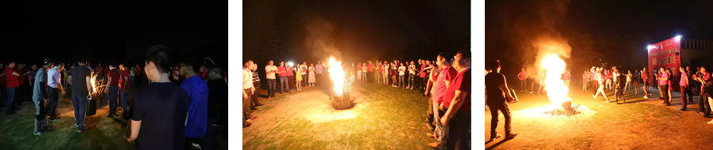 燒烤活動結束,隨著夜幕臨近,公司還準備了精彩的篝火活動,篝火晚會在陣陣歡呼之聲中與激情四射的音樂聲中拉開了序幕,由千科集團董事長萬澤斌親自點燃了勝利的焰火,熊熊大火昭示著千科品牌將走向一個更輝煌的階段。