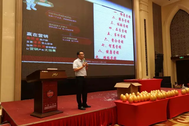 千科集團商學院副院長金立育,發(fā)表了《品質營銷,整合營銷,體驗營銷,服務營銷,場景營銷,健康營銷,事件營銷,智慧營銷,終端促銷》就如何打造法國千科品牌九大營銷體系,如何將法國千科《百萬富翁計劃》實施和落地進行分享。