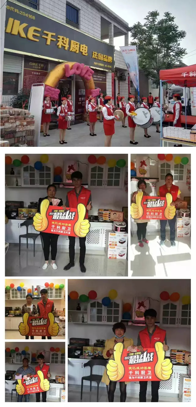 5月6日,河南焦作沁陽(yáng)專(zhuān)賣(mài)店開(kāi)業(yè),開(kāi)業(yè)三天銷(xiāo)售千科集成灶12套,高端TC22+790C+F55套裝9套,銷(xiāo)售額達(dá)13萬(wàn)多。