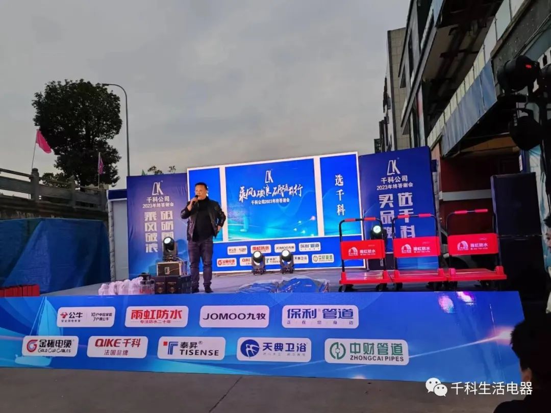 2023年12月10日,重慶云陽千科建材年終答謝晚宴活動圓滿舉行,來自云陽各地的千科分銷商和當(dāng)?shù)芈?lián)盟的三工師傅出席盛宴。答謝會的圓滿舉辦,進(jìn)一步擴(kuò)大了千科建材在云陽地區(qū)的影響力,為接下來的建材零售渠道發(fā)展提供了更堅實的保障。